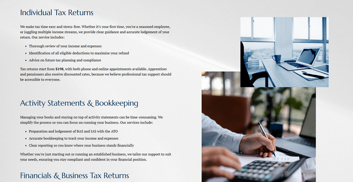 Go Further Accounting is passionate about providing a clear and easy to understand financial experience to their clients. They are based in Bacchus Marsh, Victoria, and are proud to be part of the local community, working with individuals and businesses in the region. Go Further Accounting approached me to revitalise their existing website, to make it look professional and easy to navigate.